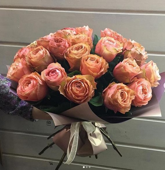 Букет из 25 роз персиковых оттенков. (Эквадор) 50 см.